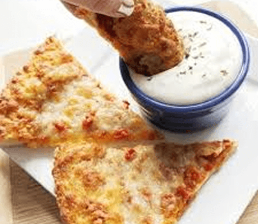 A rich, smooth dip typically featuring garlic essence, ideal for enhancing the flavor of your pizza.