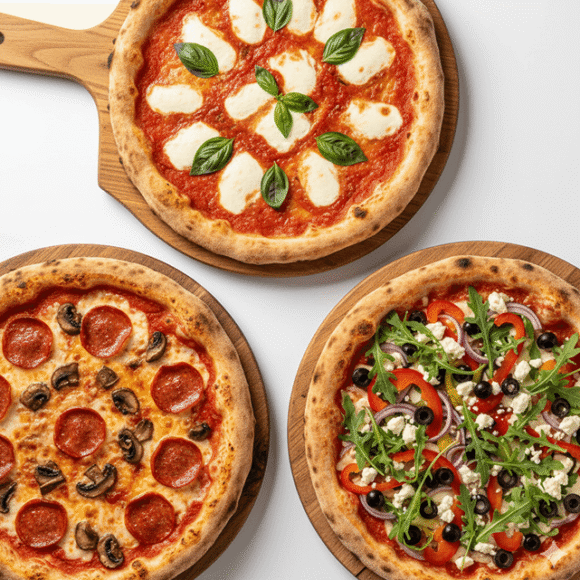 Order any three pizzas and get the third pizza at 50% OFF. Perfect for families, parties, and group orders.